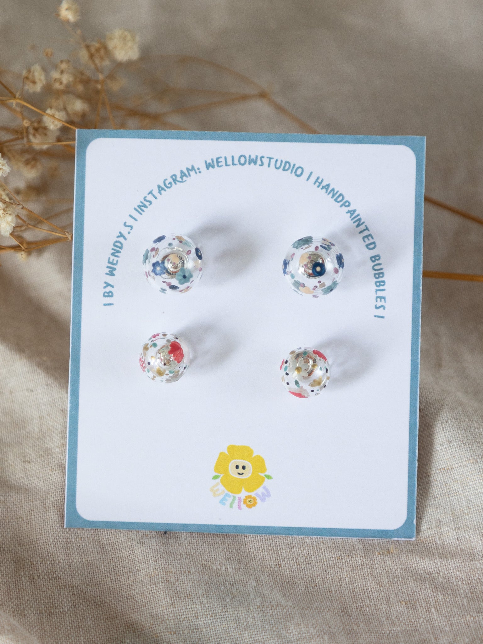Please note that each earring is handmade individually and so there may be slight variations from what you see in these photos. Please handle them with care. Avoid contact with water, perfumes, moisturisers and cleaning products. We recommend you to store them in an individual bag when not in use.